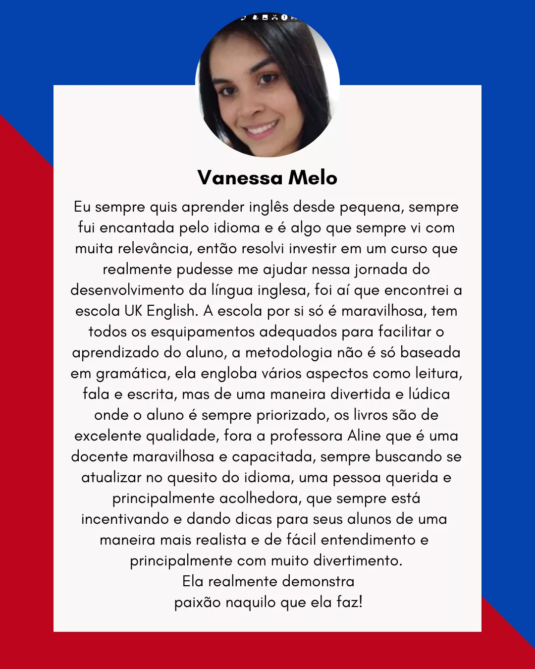Sou Aline Treff, professora de inglês desde 2006 e especialista em Neurolanguage Coaching. Tenho certificações internacionais em proficiência e metodologia de ensino e criei o curso 'Your Way - Inglês do Seu Jeito' para ajudar adultos a aprenderem inglês com confiança.